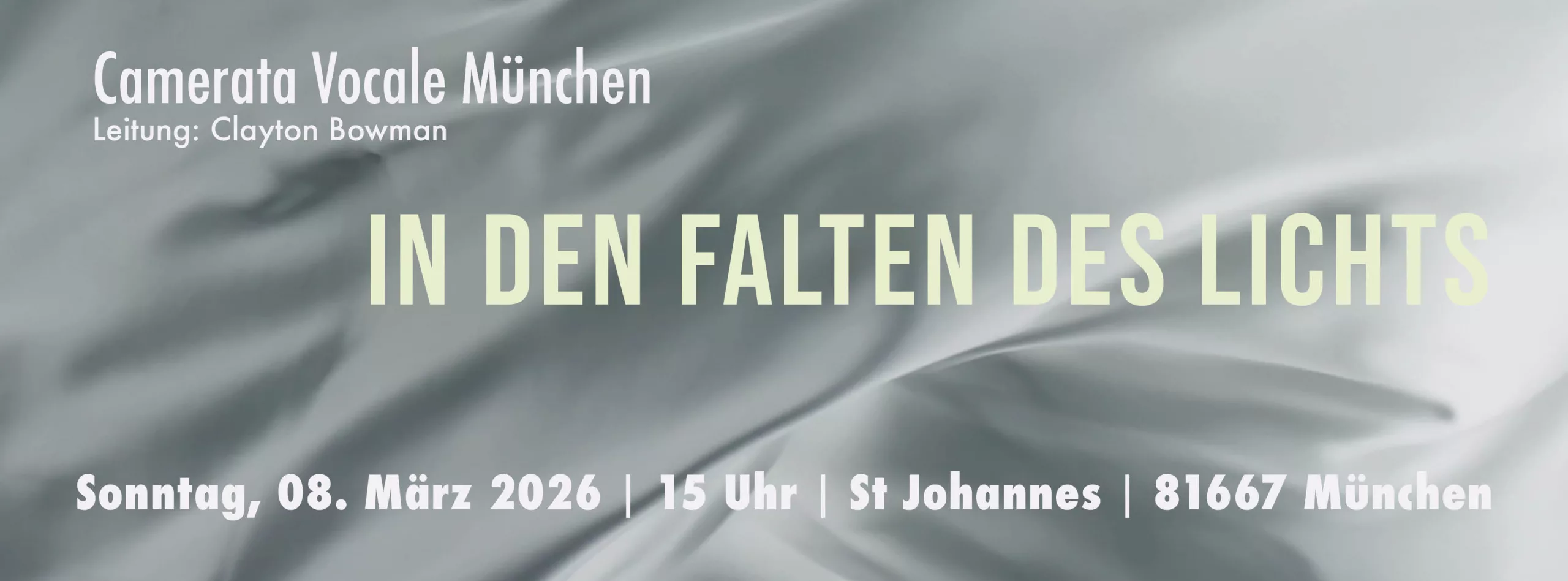 Die Camerata lädt zum Konzert „In den Falten des Lichts“ mit Chormusik von Duruflé, Howells und Williams am 08. März 2026 in der Johanneskirche am Preysingplatz ein.
